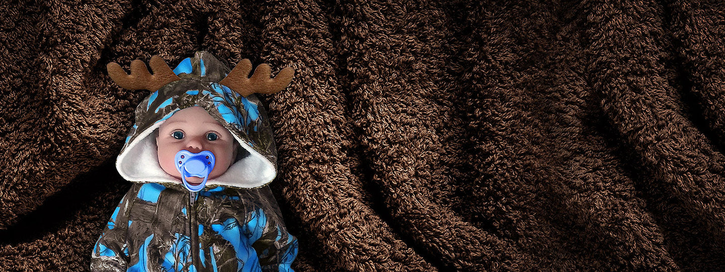 Combining camo, cuteness & comfort, The Huntsie is perfect as an extra layer for outings. And you will love the front zipper for fast & easy diaper changes during colder months.